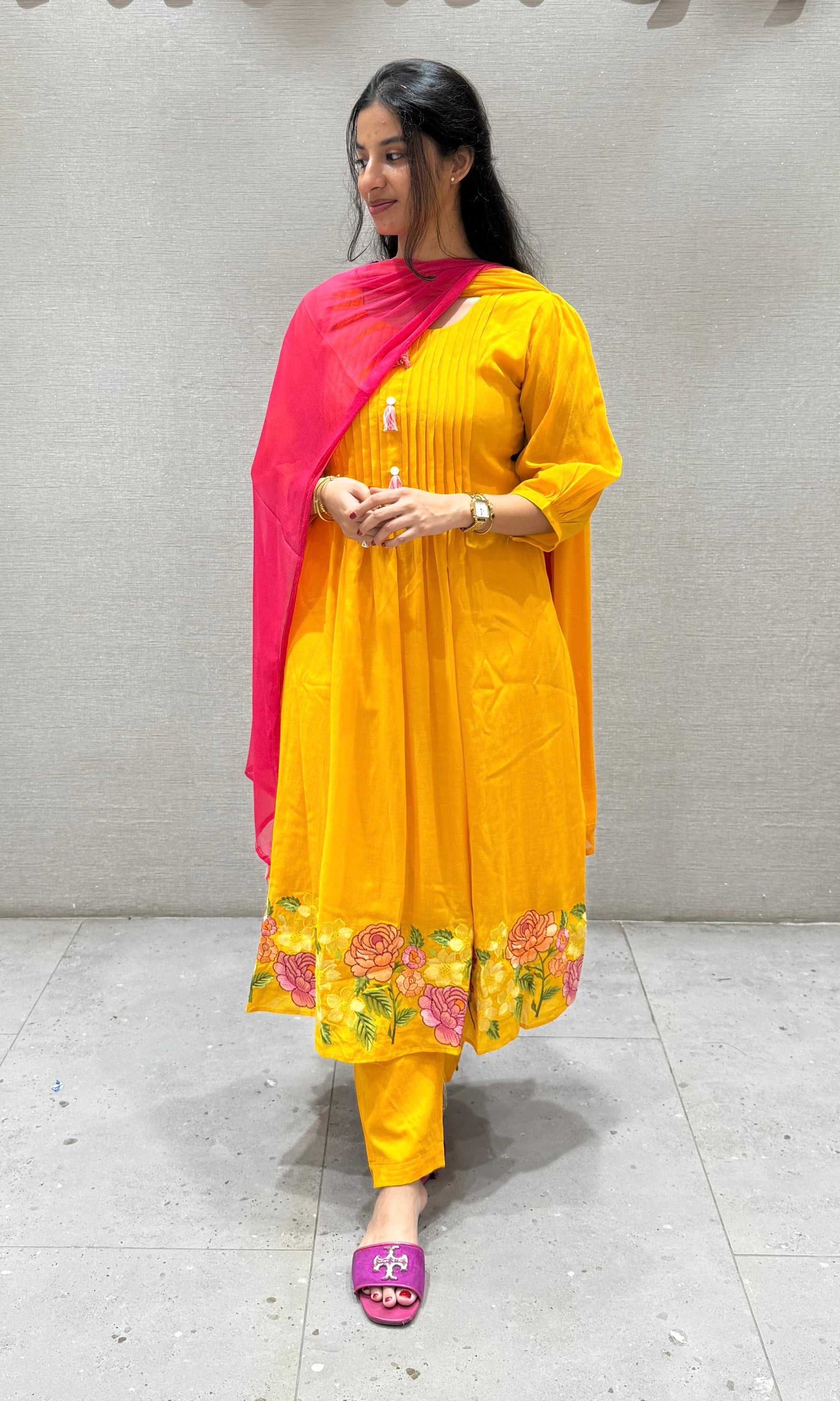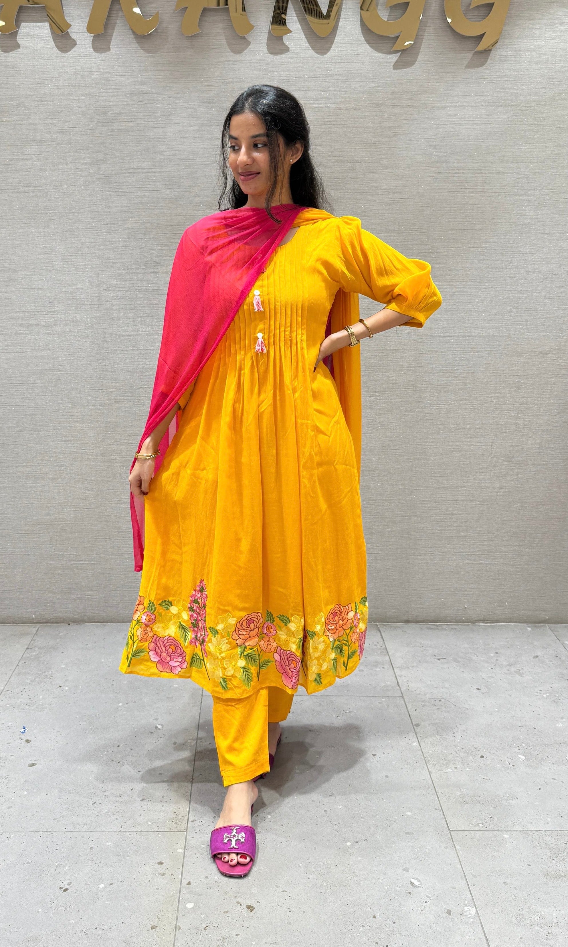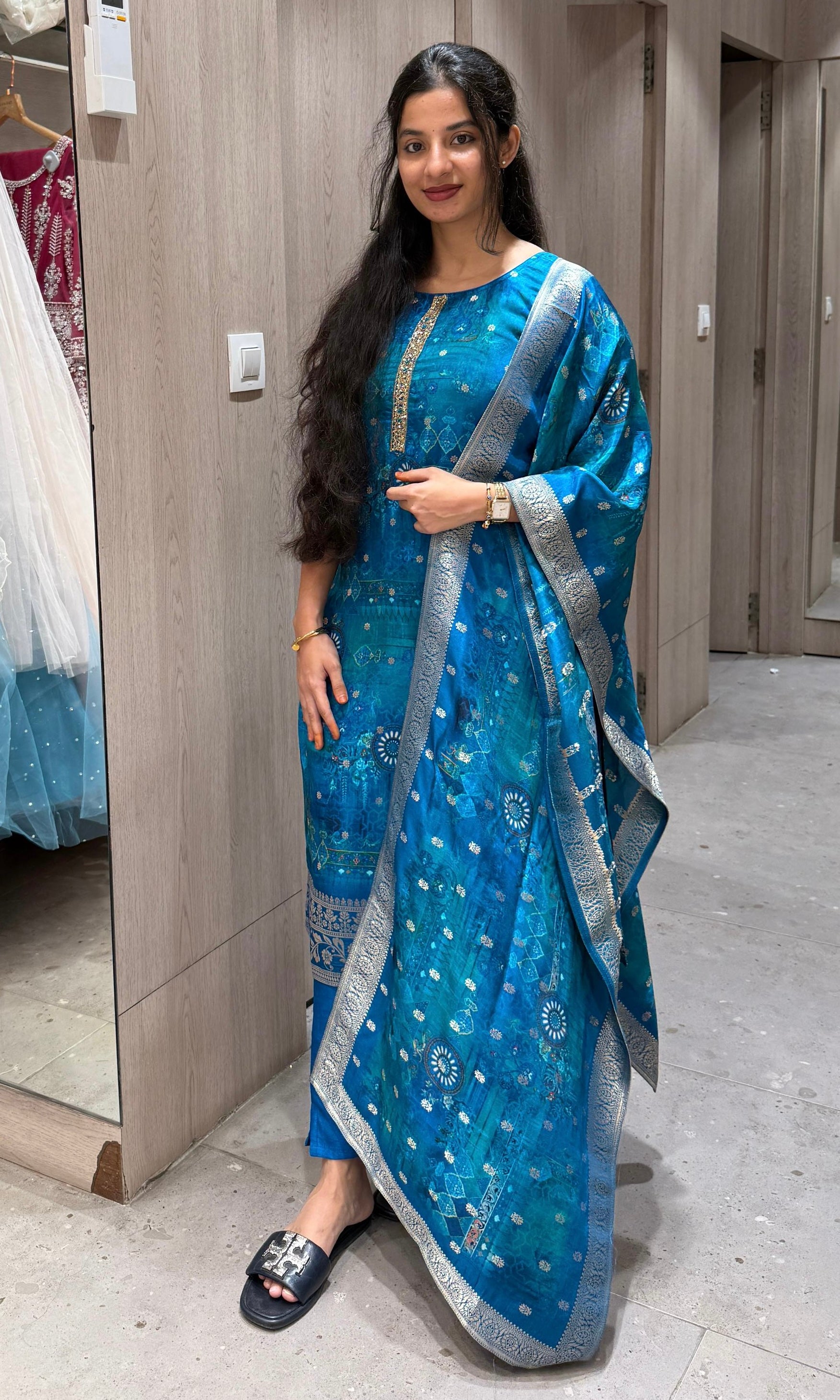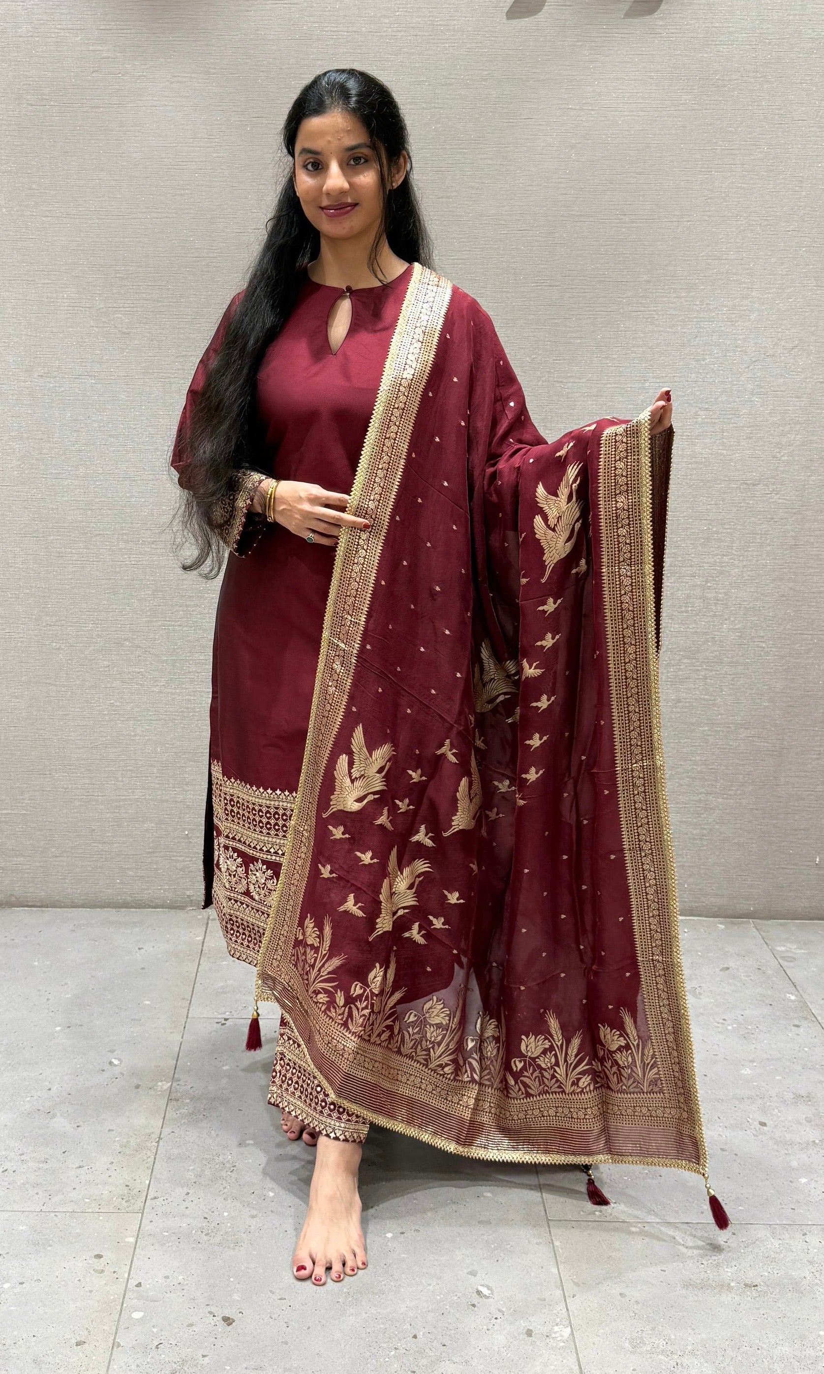 Off-White Block Print Cotton kurta set with Pant & Dupatta